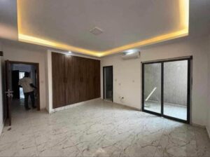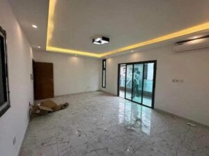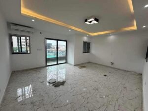 2 Chambres avec douches et placards..1 séjour…une salle à manger..1 cuisine ultra moderne..1 magasins..terrasses… garage..1 générateur..video surveillance ascenseur..vigiles 24h/ 24h